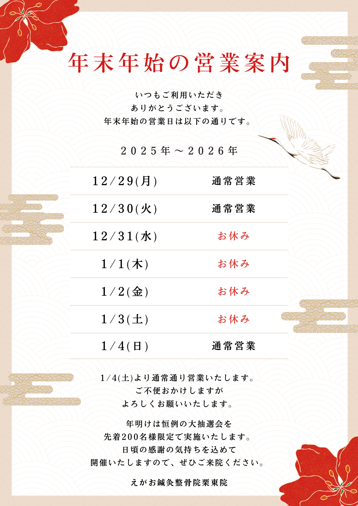 ✔ 痛みを持ち越さず、気持ちよく新年を迎えられる